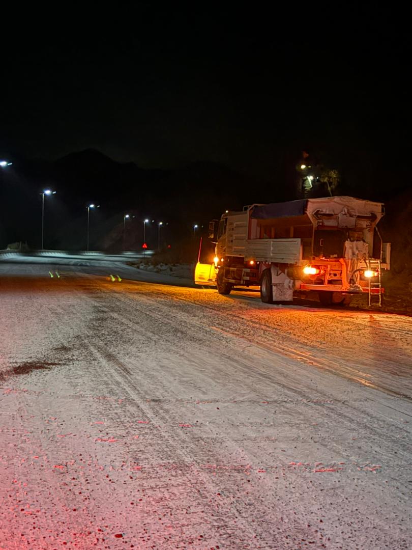 Государственные предприятия «Кыргызавтожол-Север» и «Кыргызавтожол-Юг» круглосуточно выполняют работы по посыпке дорог инертными материалами. Движение открыто.