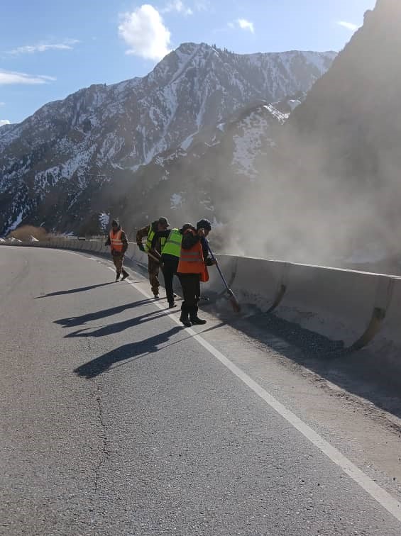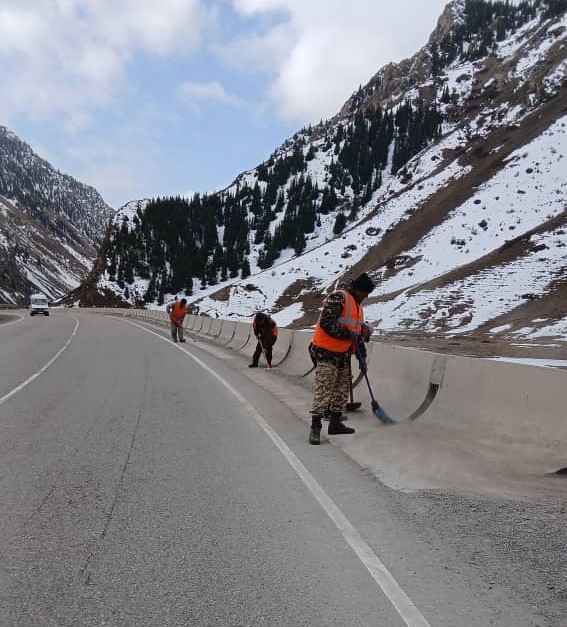 №41 ЖТИ: Жолдун 289-319-чакырымдарында жол белгилери, жол тасмасы жана парапеттер, ошондой эле жол жээгиндеги таштандылар тазаланды.