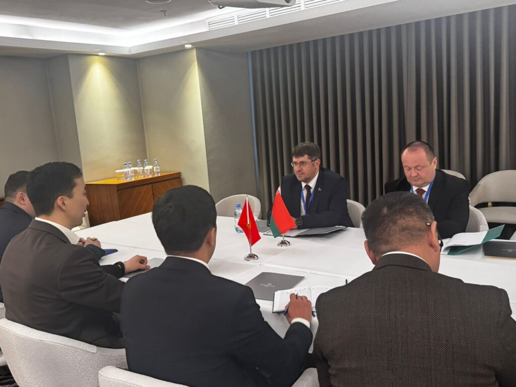 Бүгүн, 23-апрелде Шанхай кызматташтык уюмунун иш-чараларынын алкагында Транспорт жана коммуникациялар министринин орун басары Бактылуу Аскар уулу баштаган топ Беларуссиянын Транспорт жана коммуникациялар министринин орун басары Сергей Дубина жетектеген делегация менен жолугушту.