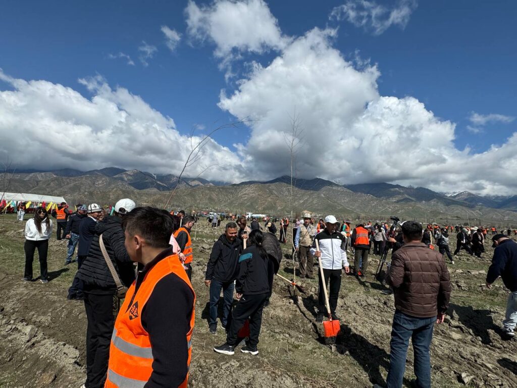 В частности, 12 апреля в селе Кутургу Тюпского района Иссык-Кульской области состоялась масштабная общественная экологическая акция — субботник по высадке деревьев.