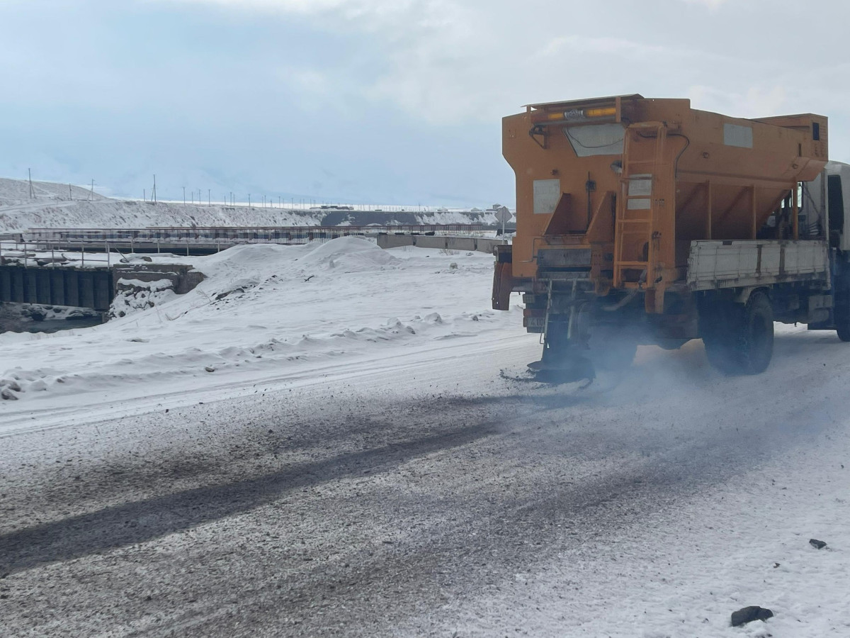 Государственными предприятиями «Кыргызавтожол-Север» и «Кыргызавтожол-Юг» Минтранскома, проводятся работы по очистке дорог от снега и подсыпке песчано-соляной смесью.