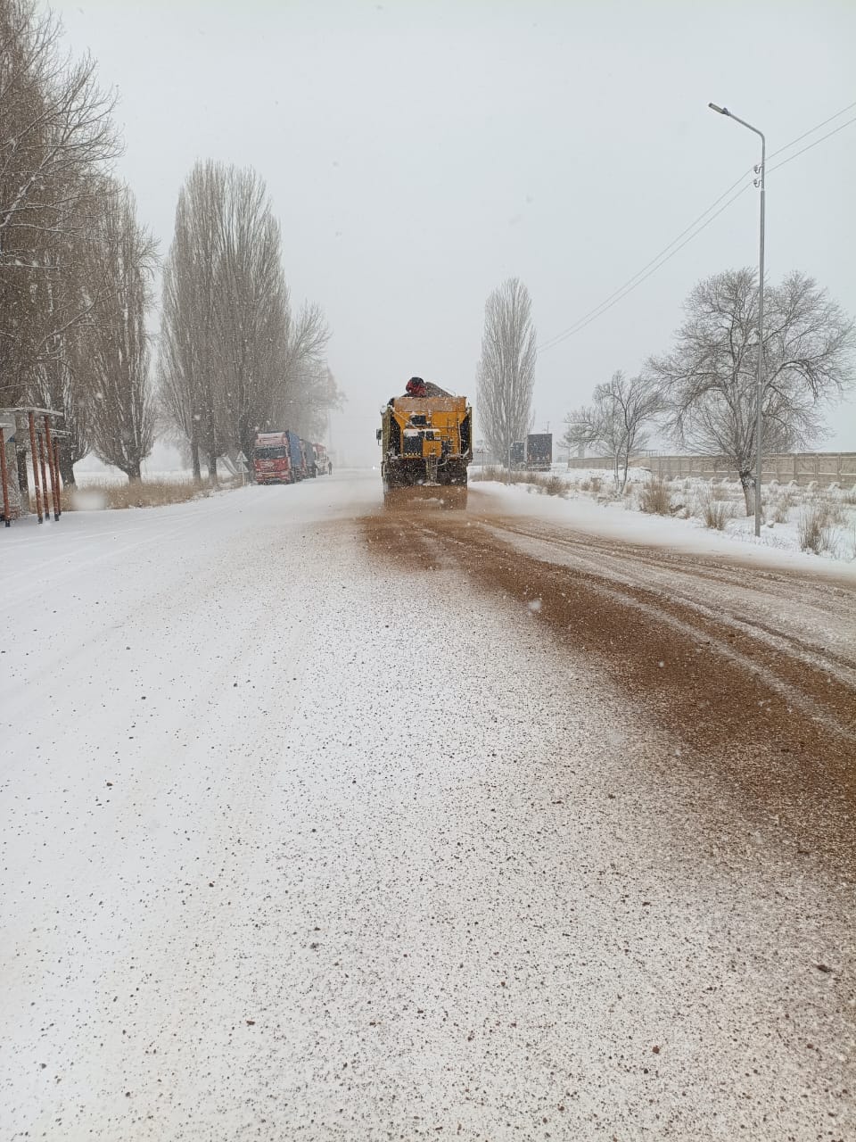Государственные предприятия «Кыргызавтожол-Юг» и «Кыргызавтожол-Север» ведут круглосуточные работы по посыпке дорог песчано-соляной смесью. Дороги открыты.