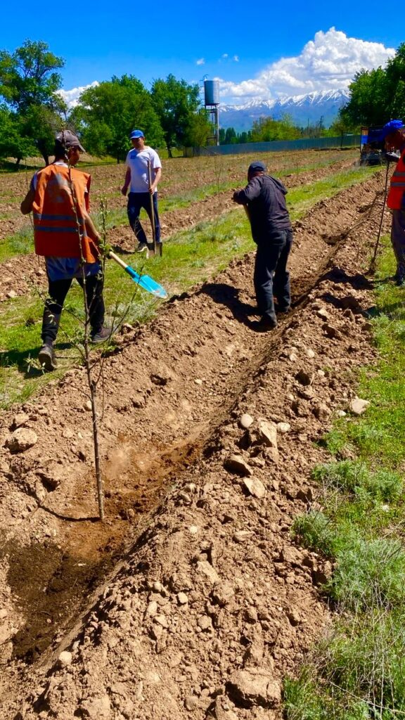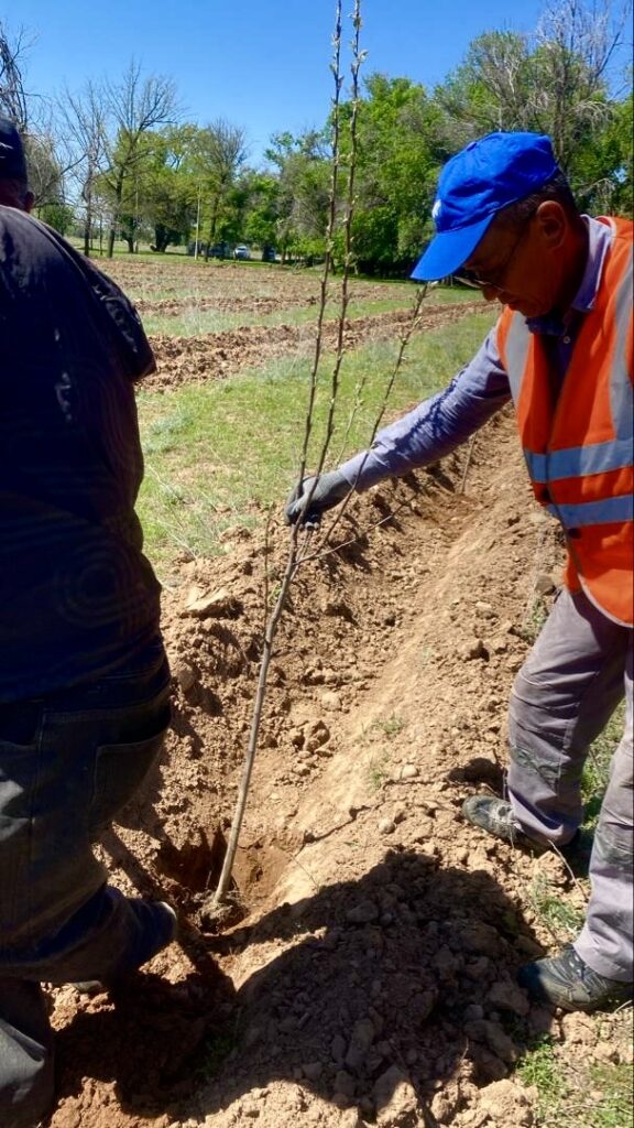 Сотрудники Чуйского областного регионального отдела Департамента дорожного хозяйства при Министерстве транспорта и коммуникаций в рамках национального проекта «Жашыл мурас» приняли участие в масштабном субботнике и, в соответствии с поставленной задачей по созданию парковых зон на площади 1 гектар, высадили саженцы