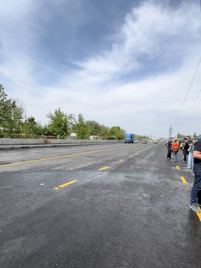 Кроме того, на участке дороги 0–350 метров уложен первый слой асфальтобетонного покрытия толщиной 9 см.