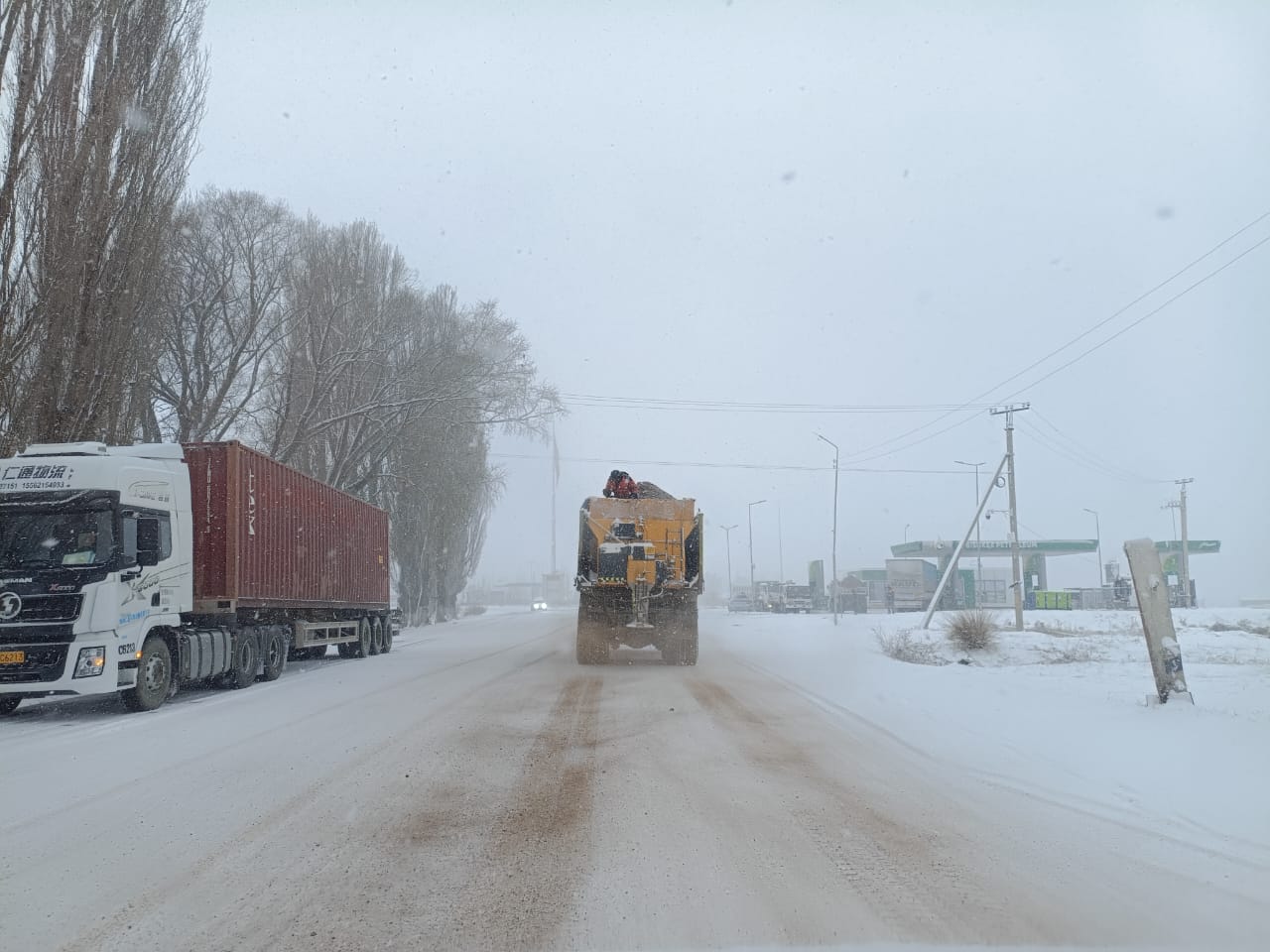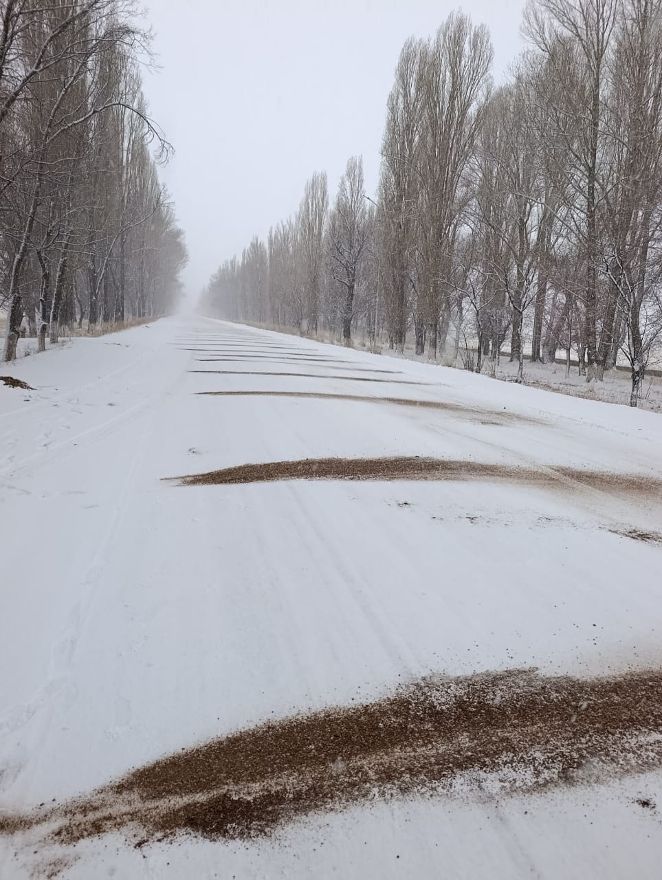 Государственные предприятия «Кыргызавтожол-Юг» и «Кыргызавтожол-Север» проводят работы по посыпке дорог песчано-соляной смесью