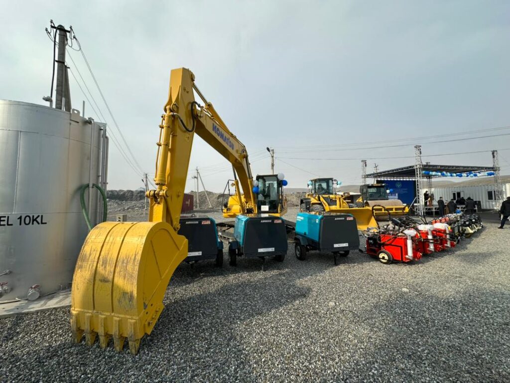 жол куруу жана тейлөө техникалары тапшырылды. Ошондой эле Баткен районунда саатына 35 тонна өндүрүмдүүлүккө ээ асфальт-бетон заводу орнотулду.