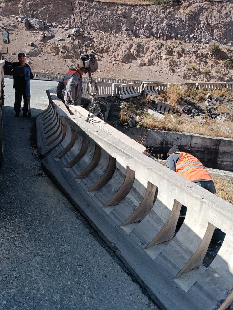 Дорожно-эксплуатационное предприятие (ДЭП) № 9 при Министерстве транспорта и коммуникаций проводит работы по замене защитных парапетов на участке автодороги Бишкек-Ош …